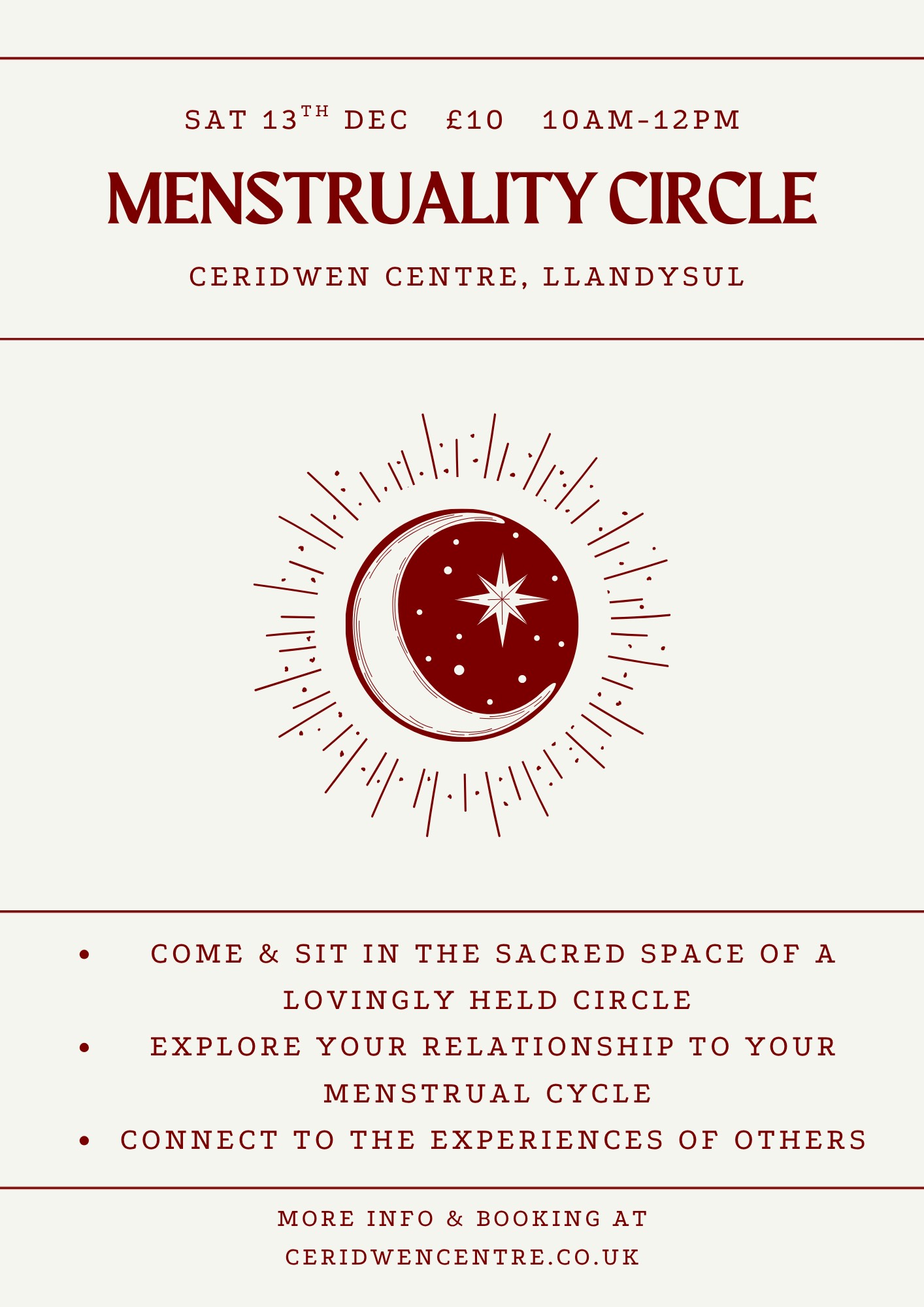 Menstruality Circle with Lillith on Sat 13 Dec from 10-12am